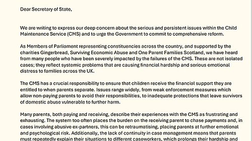 Ian’s letter, which was signed by 26 other MPs and supported by charities Gingerbread, Surviving Economic Abuse and One Parent Families Scotland, has called on Liz Kendall to overhaul the system.